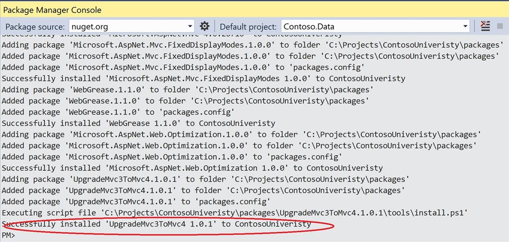 After Package Manager Console opens up, type the following command "Install-Package UpgradeMvc3ToMvc4"