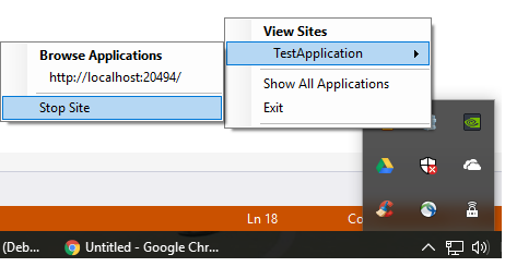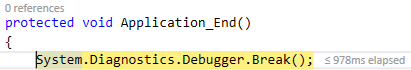 Testing the Application_End method is a bit tricky because it will only invoke when the application terminates legally. So stopping the application will detach the debugger from the application before the Applicaiton_End method is called. To test the Application_End method, we need to stop our site using IIS Express directly, as shown below.