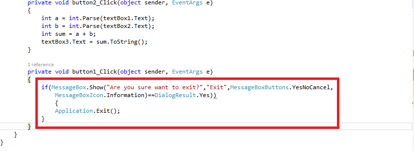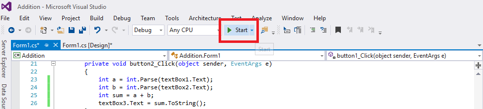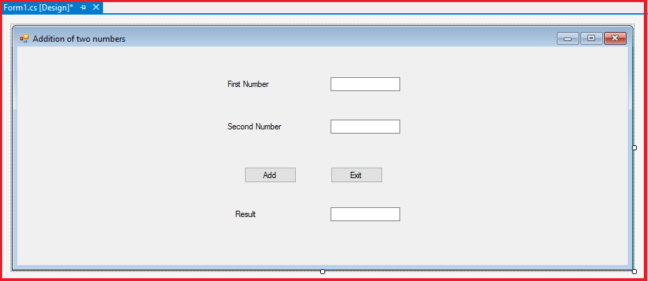 Step 6: Double click the Add Button the coding page will be open now we can write the code for the addition of two numbers,