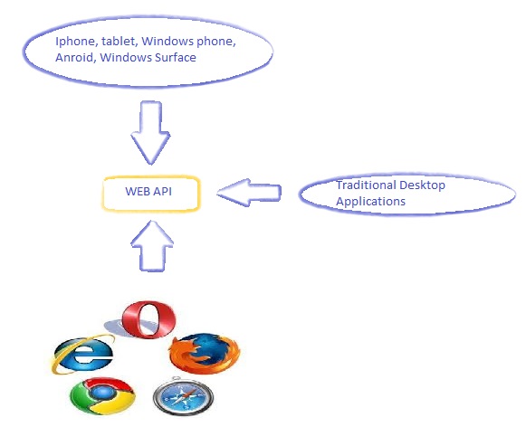 Phones, iPhones, Android or any browser can communicate to Web API if they are