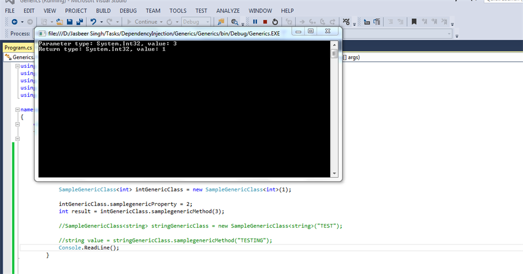 - SampleGenericClass<string> stringGenericClass = new SampleGenericClass<string>("TEST");
