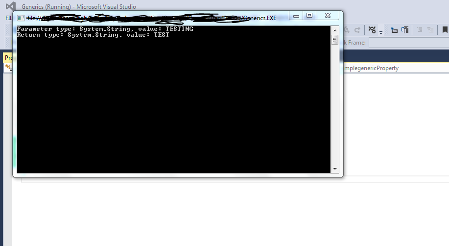 - Console.WriteLine("Return type: {0}, value: {1}", typeof(T).ToString(), genericMemberVariable);