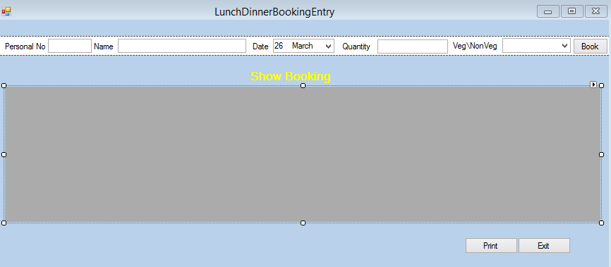This requirement is very useful when we are working in windows form or webform. Here my requirement here is very simple, when we enter all the fields and click on Book button it will temporarily bind the data to the datagrid shown below. Here I have shown the screen shot as follows.
