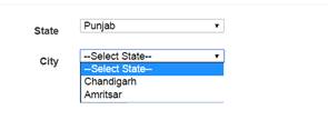 I have tblState and tblCity, where I have stateid as Primary key in the tblState table and stateid as the Foreign key in tblCity table. You can insert states and cities from the database as you wish.
