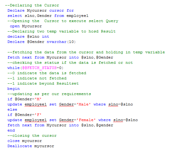 BY USING CURSOR