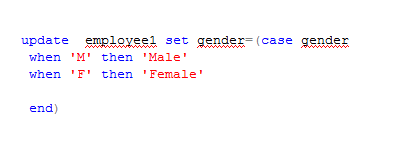 Now the question is where the Gender is 'M' update to 'Male and where Gender is 'F' update it to 'Female'.