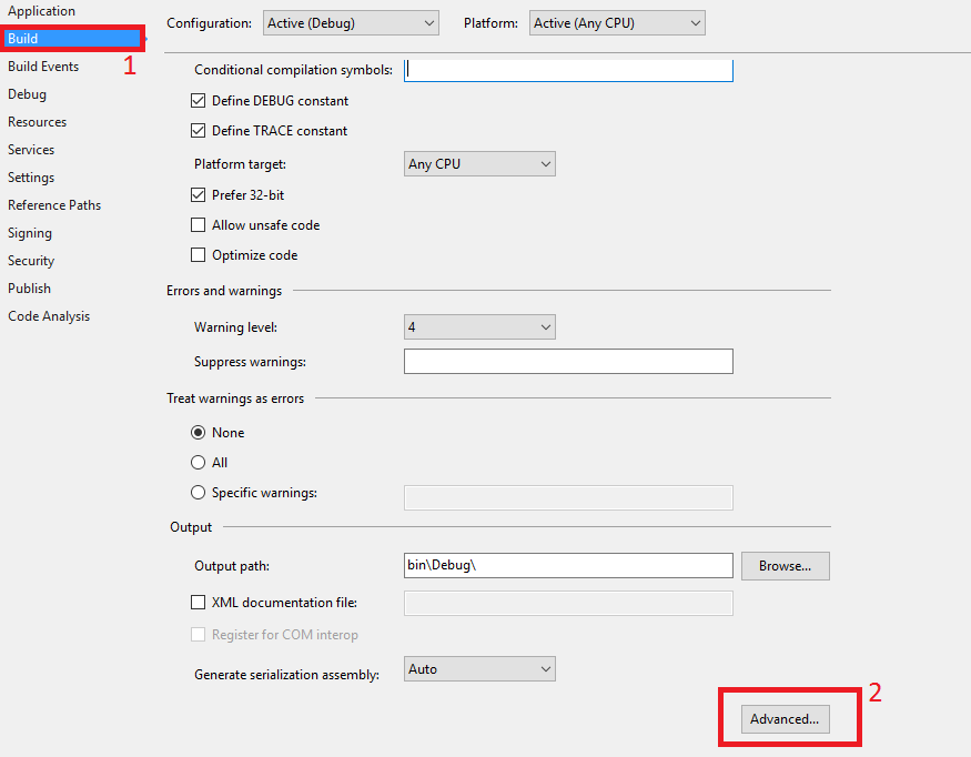 Click on "Bulid" tab once you get the below screen and next, click the "Advanced" button.