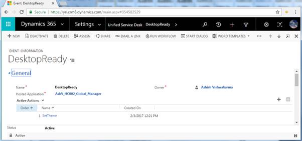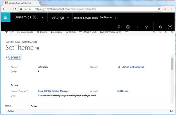 Here, in Active Actions subgrid, add SetTheme action call created in the last step. Refer to the screenshot.