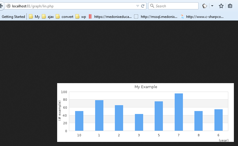 - $graph->xaxis->title->Set('(year)');