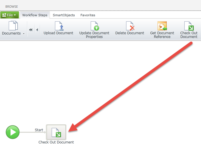 Go to K2 designer, drag and drop Check Out Document step from the Documents workflow steps in the ribbon interface.