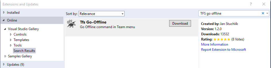 - Click on online option and search for TFS go offline.