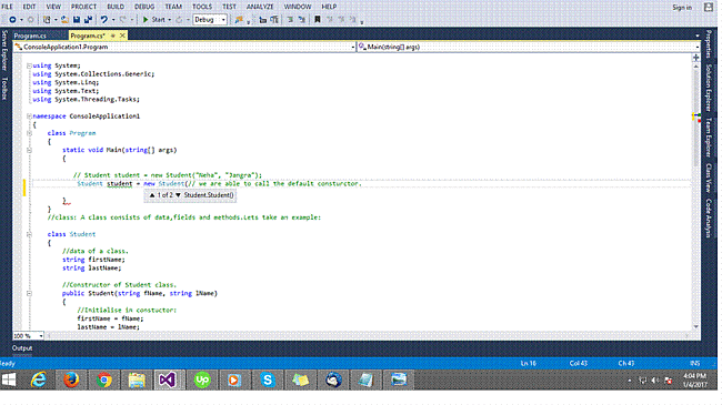 In the case above, when we try to create an instance of the student class mentioned above, then we will get two options for it. Please see the screenshots.