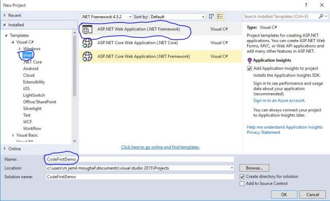 - Select WebàASP.NET Web Application and then name it as CodeFirstDemo.