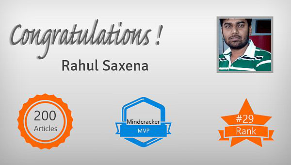 Today, we have another big moment for the C# Corner community. C# Corner MVP and long time member Rahul Saxena has completed 200 articles.