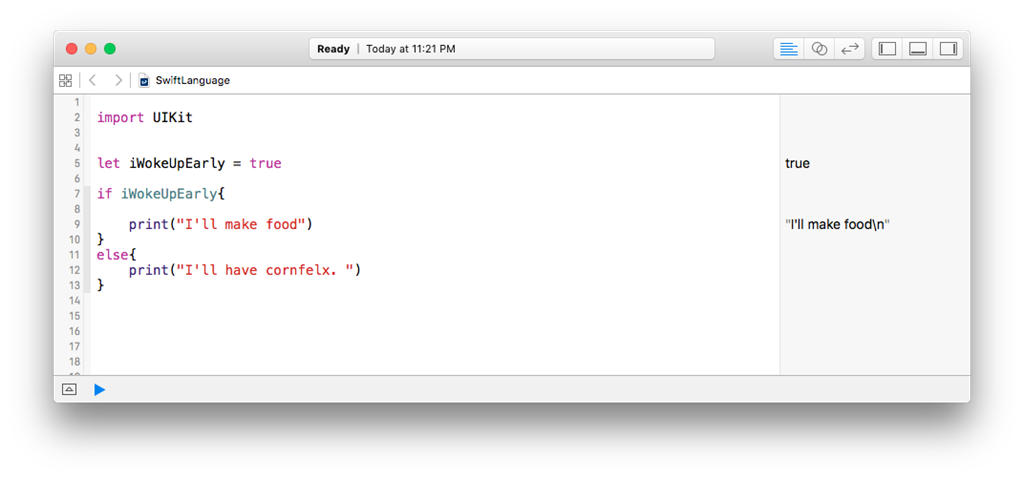 - Whether you have one line of code or two, you have to put those curly braces after condition. Apple thinks it enhances the readability of code.