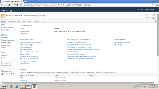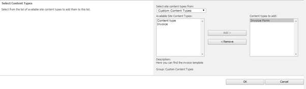 Step4: once you hit ok the content type will enable for the particular list or library.
