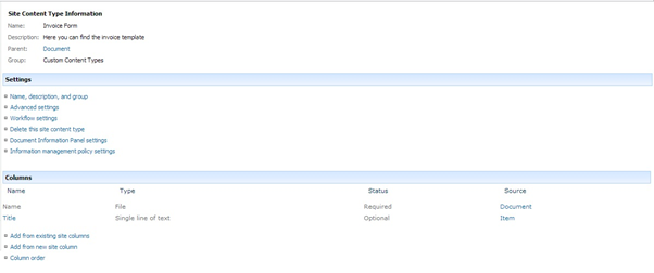 Step5: Now create content type by using site content, go to site action – site setting choose site content type under galleries.