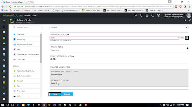 - Click Document DB NoSQL and from the Document DB NoSQL, select the account.
