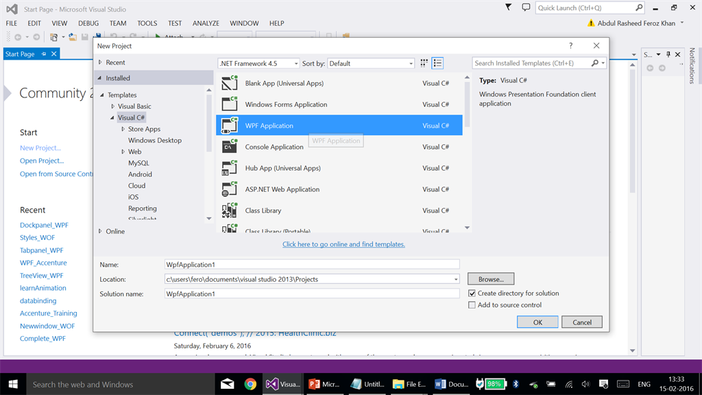 Step 1: Create an empty WPF using Visual Studio, enter the name for the application and click on OK.