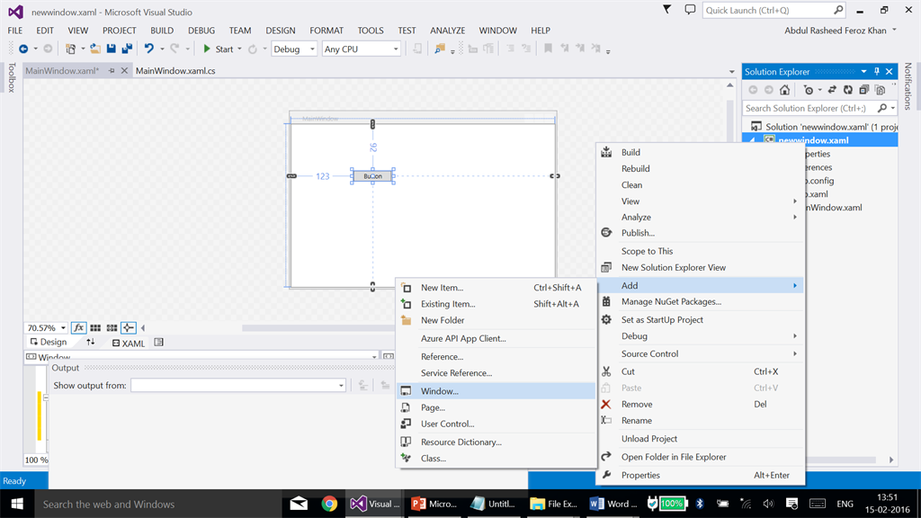 Step 3: Solution Name(Right Click) --> Add à New Window.