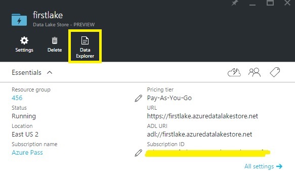 Step 2: Click the name of the Azure Data Lake Store that you want to create folder, In your Data Lake Store account blade, click Data Explorer.