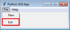 In this blog, I am going to create a Menu Bar in a Python GUI application. It will display the file and help menus on the application screen. When a user clicks "Exit item" in file menu, the Python application will close.