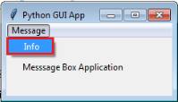 In this blog, I am going to create a message box in a Python GUI application. When a user clicks the info item from message menu, it will display a message box on the application screen.