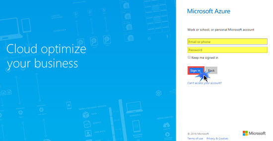 First of all, you need to login to Microsoft Azure portal.