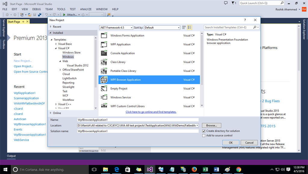 Let's Start with step by step instructions to create the WPF browser application for scanning the documents.