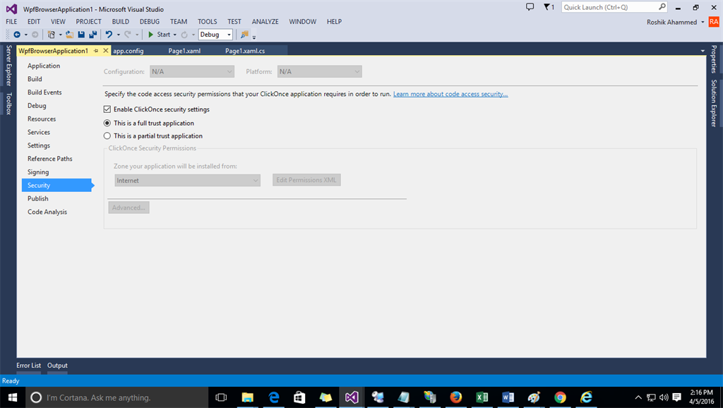 Step 8: If you are running WPF browser application make sure your site is a fuly trusted site if it is not you have to make this a fully trusted site.