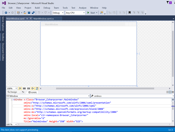Step 3: Goto MainWindow.xaml and paste the following code for the web browser: