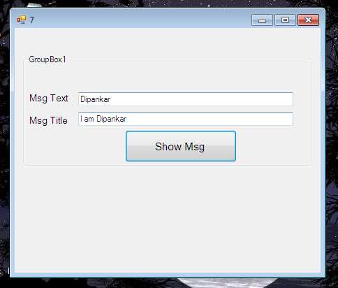 - subClass1.ShowMsgBox(TextBox1.Text, TextBox2.Text)