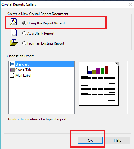 Step 4: Next step, select 'using the report' wizard and click 'Ok',