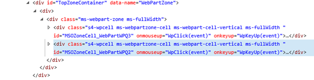 You might be thinking why we need an ID (TopZoneContainer) for DIV if already an ID (TopZone) is for webpart zone. Reason why we can’t use this Webpart ID is because it is available only in the Edit mode of the page, in the display you will not find this ID hence we have to add ID in order to get hold of specific zone.
