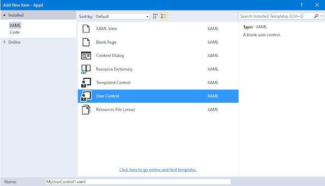 Now Add a New User Control by just clicking on to the project and add new user control and name it according to your requirement.