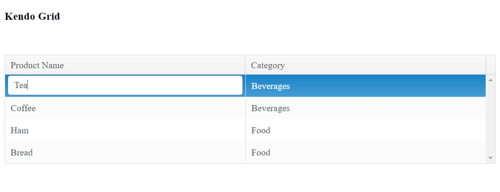 Validation in the Kendo Grid plays a vital role while we are updating the data in the Grid. To explain how to implement the validation in the Kendo Grid, I have created a Grid with static data source and batch editing.
