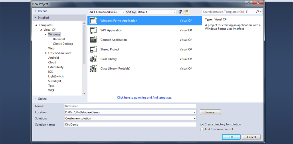 In this blog I am going to describe how to customize “Window Form”. First of all we have to create a new window form application. So click on File->New-> Project, and select “window form application”.