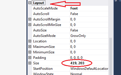 Now resize the window. Expand the Layout, and under layout there is a property called size. Here provide the window size separated by “,”.