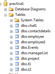 Here is my database Practice1 and having tables chat1.I want to rename both.