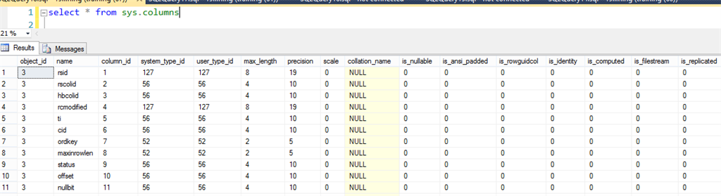So, use INFORMATION_SCHEMA.COLUMNS when you want to get columns name, table name or some other general information. But, if you are willing to get schema related information or some other information, then prefer the sys.columns method over INFORMATION_SCHEMA.COLUMNS.