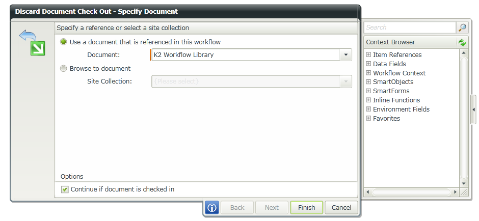 Deploy the workflow. Select a document in “K2 Workflow Library” library which has been checked out and run the workflow. After few minutes the workflow will be completed and the checked out document will be discarded.