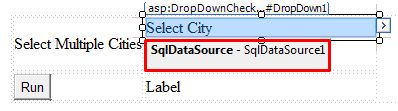 - <asp:DropDownCheckBoxesID="DropDown1" runat="server" AddJQueryReference="true" UseButtons="True" UseSelectAllNode="True" AutoPostBack="false" DataSourceID="SqlDataSource1" DataTextField="CityName" DataValueField="CityId" RepeatDirection="Horizontal">