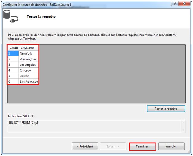 After finishing the configuration related to the SqlDataSource we need to fill our Dropdown List with data included in SqlDataSource. Please follow the steps