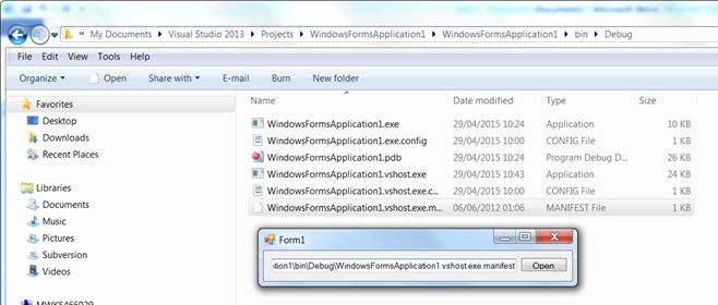 Run your application. Drag file from explorer to your Application