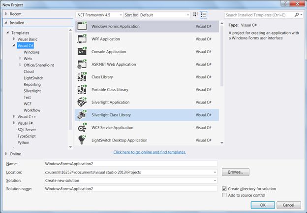 Create a project of type “Windows Forms Application”: