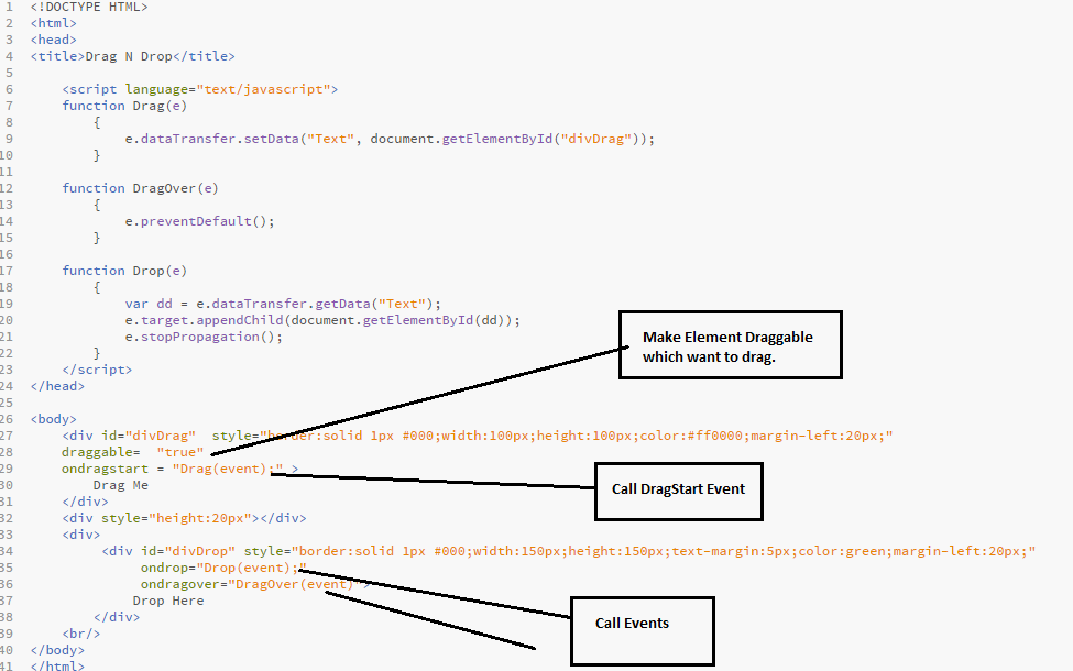 HTML5 has introduced new feature of “Drag and Drop” elements. Earlier this feature needs to implement using scripting language and third party plugin but in HTML5 with just few lines of scripting language we can implement this feature. HTML5 has introduced number of events to support this feature.