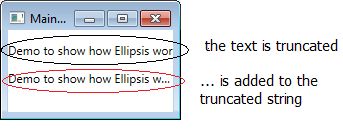 Name="textBlock2" TextTrimming="CharacterEllipsis" VerticalAlignment="Top" >Demo to show how Ellipsis works</TextBlock>