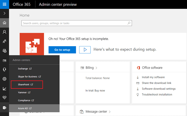 Step 2 - Then, select SharePoint from left navigation, as shown below.