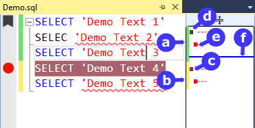 When this is enabled, you should be able track the changes done i.e. which portion of the query is saved and which portion has been changed after the last save. You may refer to the image on the right side, where the Green colored portion marked with “a” is the section which is already saved and the portion with Yellow color and marked by “b” is the portion, which is changed after the last save.