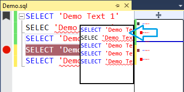 In SSMS, Annotations on the vertical scroll bar are the visual indications/symbols to have a bird's eye view of the change made to the current query Window. These are small color markers on the vertical scroll bar, which indicate various things like breakpoint, current caret position, errors, code changes etc. You can easily navigate to these positions of your query by scrolling down to the marked positions. This feature is particularly very helpful when you are writing/editing a long query/stored proc/function etc.
